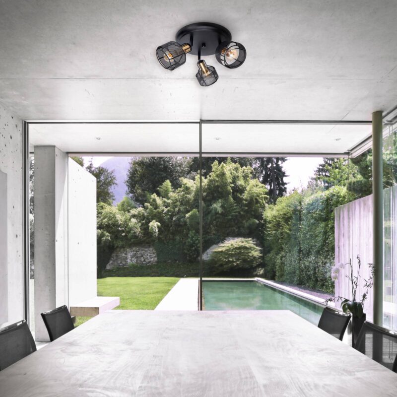Stropné svietidlo Foro, 3-plameňové, čierna/zlatá