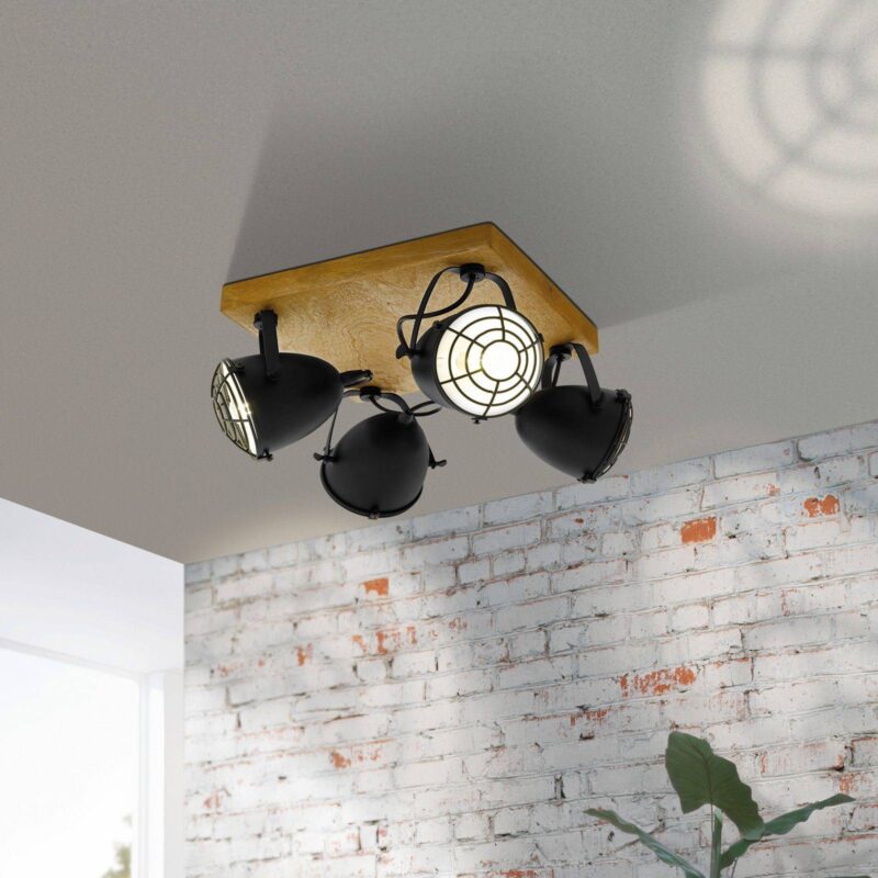 Stropný reflektor Gatebeck so štyrmi zdrojmi svetla a drevenou stropnou konzolou Stropný reflektor Gatebeck možno použiť veľmi flexibilne a jeho svetlo nastaviť do všetkých smerov, pričom nájde uplatnenie všade, od obývačiek cez chodby až po spálne alebo tínedžerské izby. Reflektor so svojimi štyrmi oceľovými tienidlami s ochrannými mriežkami a štvorcovou stropnou konzolou zo svetlého prírodného dreva sa hodí do moderných interiérov zariadených vo vidieckom štýle s nábytkom z prirodzeného dreva, ako aj do priestorov zariadených v industriálnom štýle. Okrem klasických žiaroviek možno do svietidla osadiť aj LED žiarovky, čím ušetríte náklady na energiu. Vhodné žiarovky si môžete priamo doobjednať.