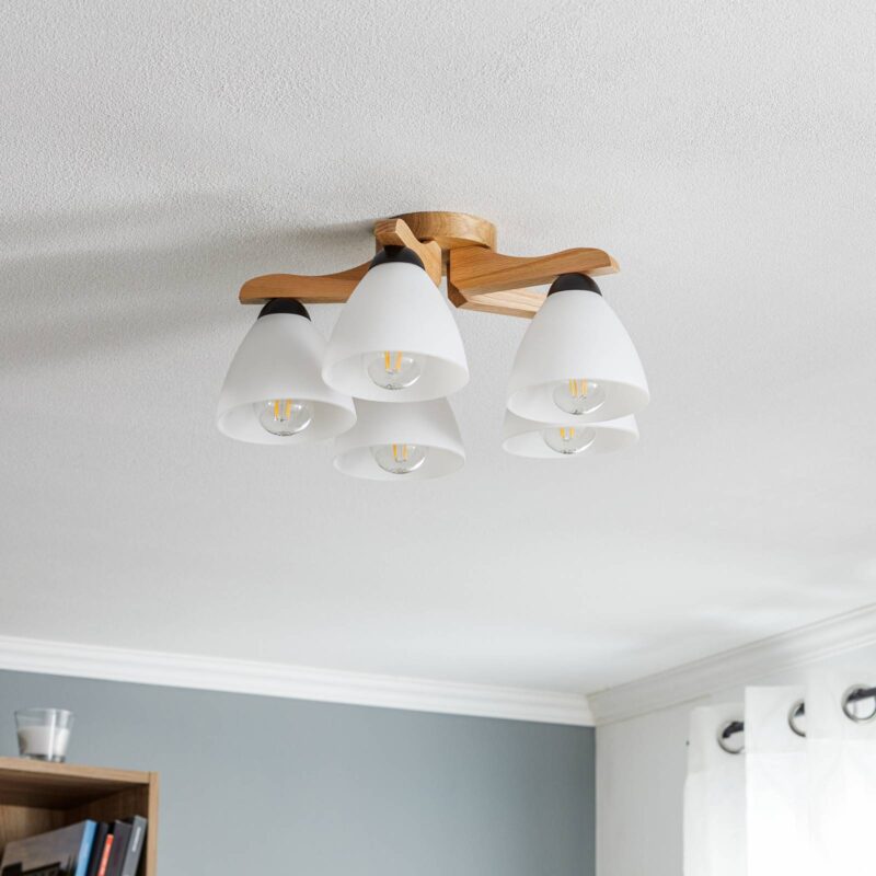 Stropné svietidlo Haro, dub/biela 5-plameňové