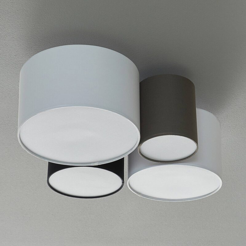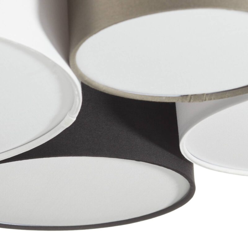 Hotel – textilná stropná lampa so štyrmi okrúhlymi tienidlami Moderná, trendová a efektná textilná stropná lampa Hotel, ktorú je možné použiť s okrúhlymi tienidlami rôznej veľkosti vo farbách biela, čierna a sivá. Difúzor, použitý v každom tienidle, zabezpečuje neoslňujúce svetlo a rovnomerné vyžarovanie svetla. Stropná lampa je vhodná ako krásny zdroj svetla v hotelových izbách – ako naznačuje jej názov – avšak aj v moderne zariadených obývačkách a spálňach, je možné ju vybaviť aj modernými LED žiarovkami a pri použití stmievateľných žiaroviek je možné ju aj stmievať.