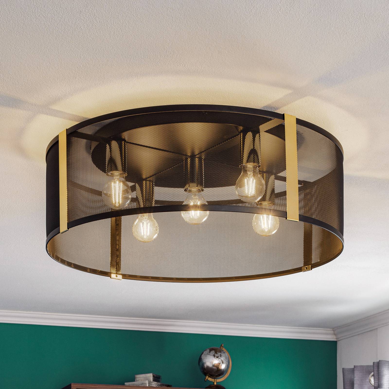 Stropné svietidlo Lavinia, zlaté pruhy, 5-plameňové