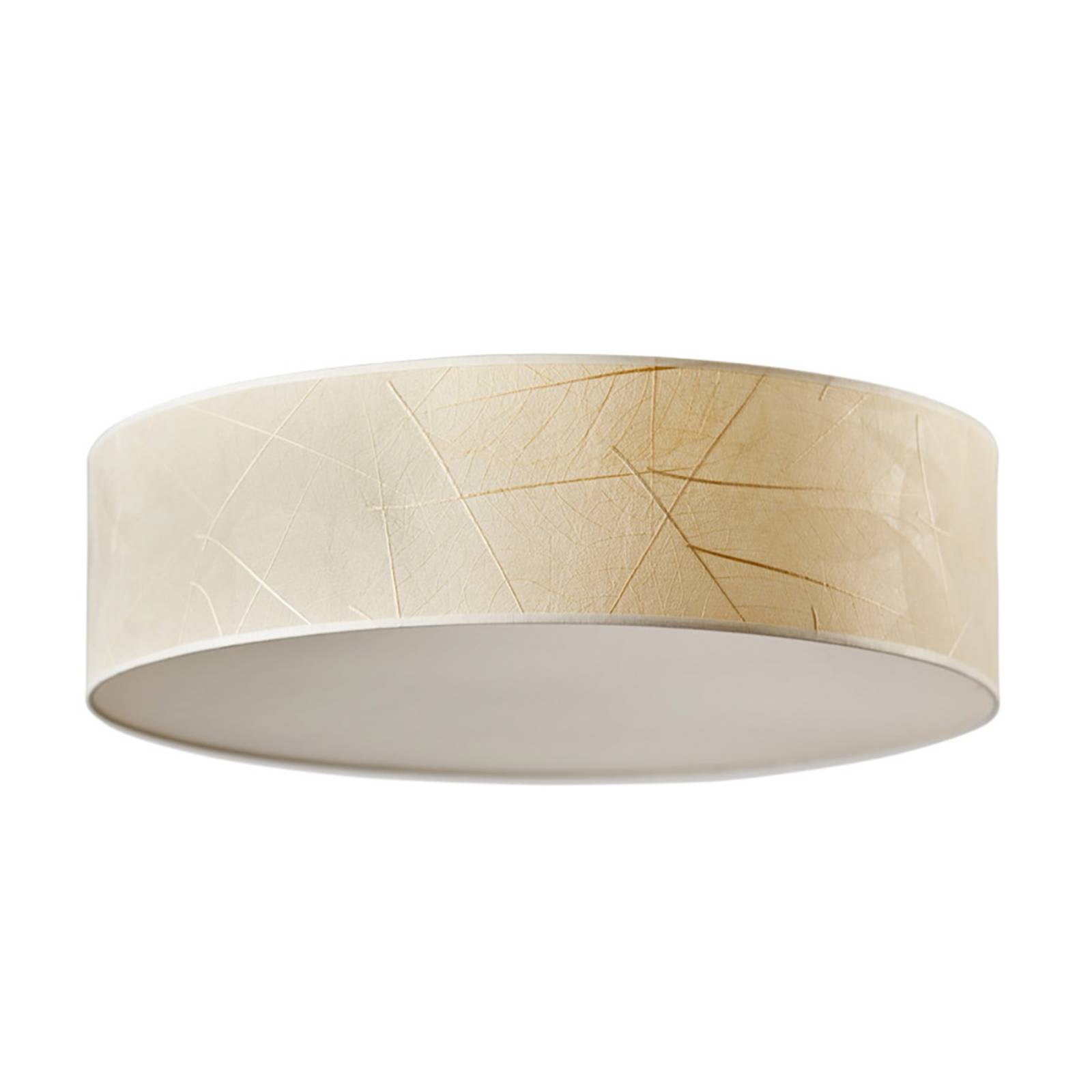 Udržateľné tienidlo z listov kaučukovníka – stropná lampa Discus Minimalistická forma, jednoduché farby, ale špeciálny materiál so vzrušujúcim pozadím. Stropná lampa Discus je ručne vyrobená z listov kaučukovníka v bavorskej dielni. Použitie prírodných materiálov má na jednej strane ekologické dôvody a na druhej strane robí z lámp nádherné jedinečné kúsky. Žilnatina listov dodáva odtieňu jemné zrno. Svetlé odfarbené listy majú neutrálnu farbu, a preto ich možno začleniť do rôznych štýlov interiéru.