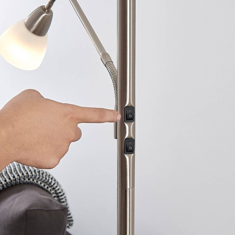 Stropné svietidlo Jost s polykarbonátovým tienidlom a ramenom na čítanie Jost je stropné svietidlo v saténovo niklovej farbe s miskou reflektora a prídavným ramenom na čítanie. Vďaka tomu je ideálny na rôzne situácie a vytvára príjemné, pocitové svetlo s nepriamym účinkom, ako aj cielené svetlo na čítanie.