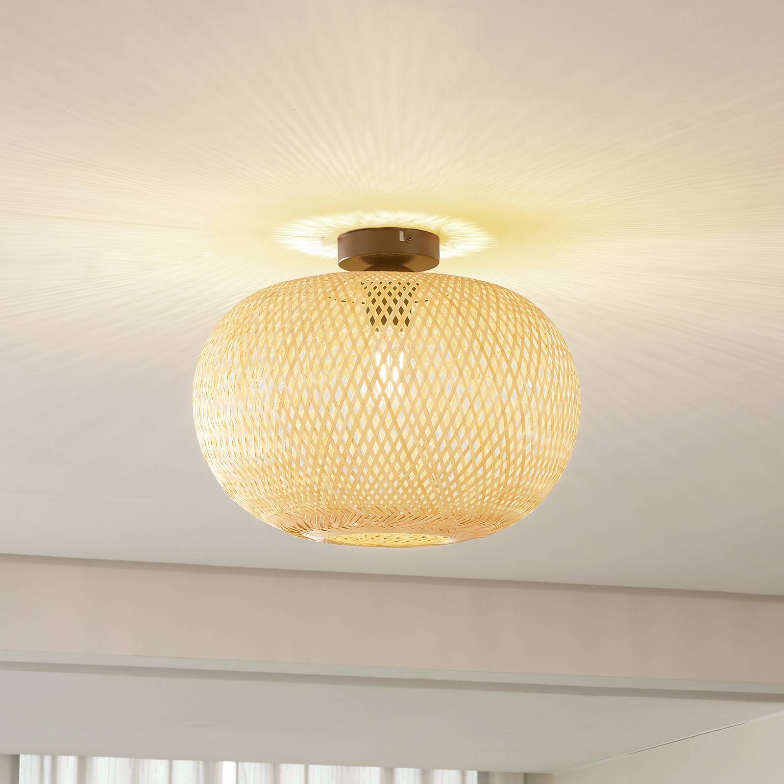 Stropné svietidlo Lindby Kessia, prírodný bambus, Ø 40 cm