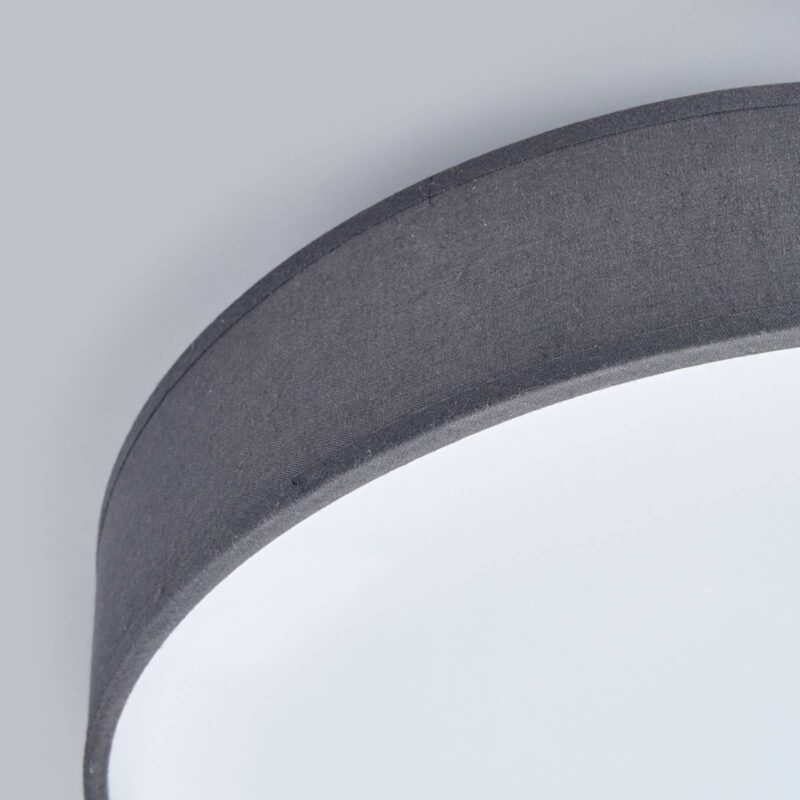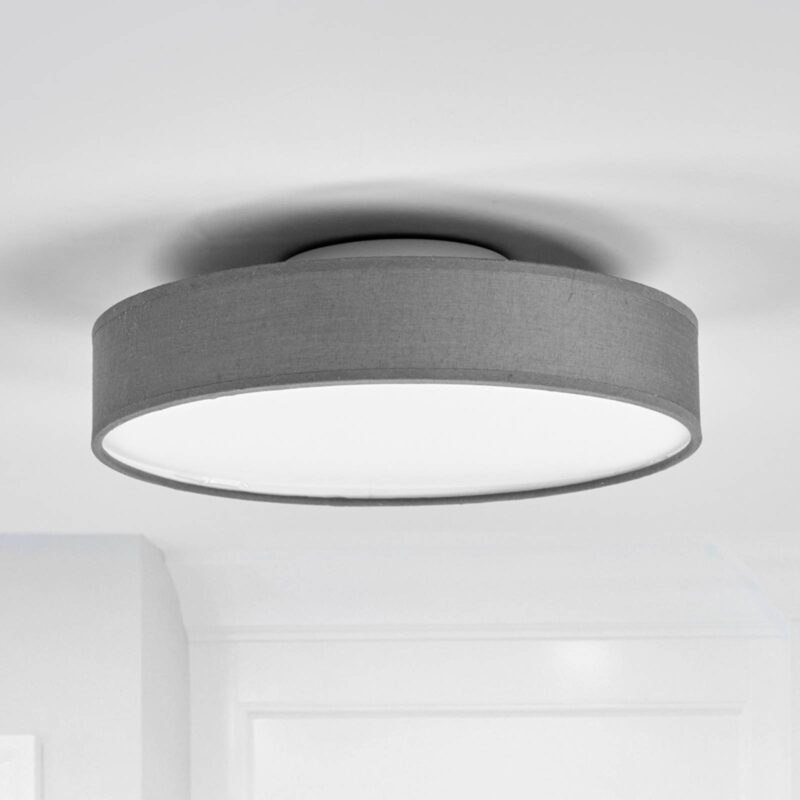 Okrúhle stropné svietidlo LED Saira so sivým textilným obklopením Saira boduje sivým textilným obklopením a pomerne nenápadným vzhľadom. Sivá je farba, ktorá sa už nespája s nudou a pochmúrnosťou, ale stala sa jednou z trendových farieb, pokiaľ ide o bývanie. Tvar tohto stropného svietidla LED s okrúhlym tienidlom je príjemne nadčasový, a preto sľubuje, že bude dlho tešiť. Energeticky úsporná technológia LED je umiestnená vo vnútri tienidla za bielym difúzorom, takže svetlo je jemne rozptýlené.