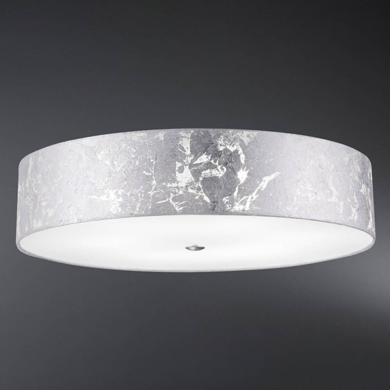 Obsadený strieborným listovým tienidlo na lampu – trendovou stropnou lampou Loop Trblietavé strieborné listové prvky premieňajú toto klasické okrúhle stropné svietidlo na moderný dekoratívny prvok. Vďaka svojmu jednoduchému, ale štýlovému tvaru a farebnému prevedeniu ho možno ľahko integrovať do rôznych štýlov vybavenia. Po zapnutí lampy vytvára strieborný list na tienidlo na lampu zaujímavú hru svetla a tieňa na strope a dodáva mu elegantný vzhľad. Nižšie pripevnený akrylový kryt zaisťuje príjemný a predovšetkým rovnomerný svetelný efekt bez oslnenia. Stropné svietidlo Loop bolo vyvinuté a vyrobené v Nemecku s vášňou a remeselnou zručnosťou s použitím vysoko kvalitných materiálov.