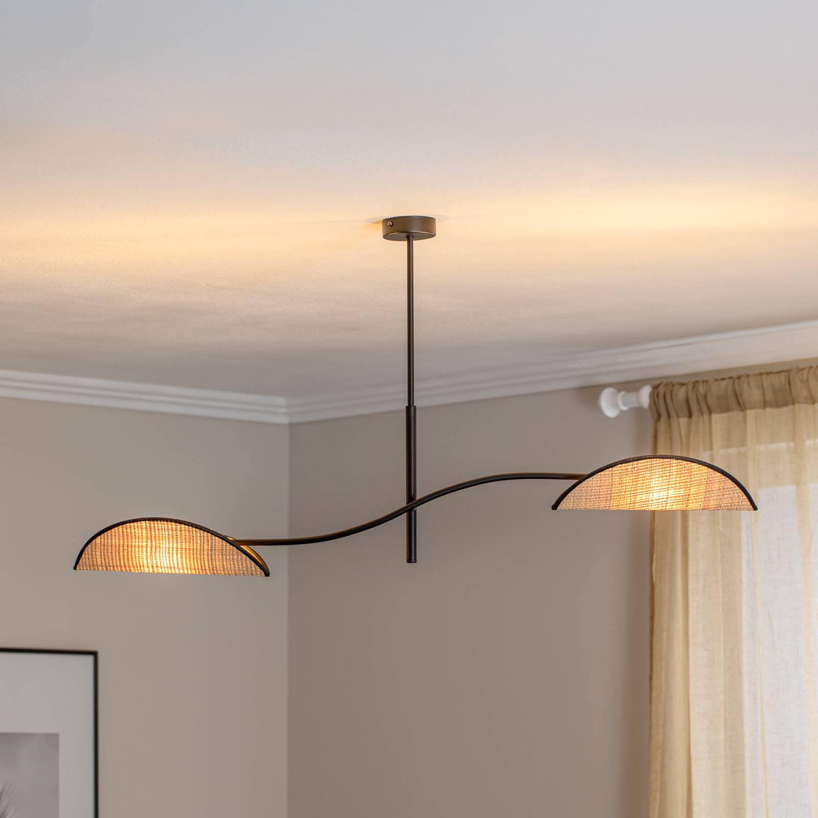 Stropné svietidlo Lotus, čierne/rattanoptik, 2-pl