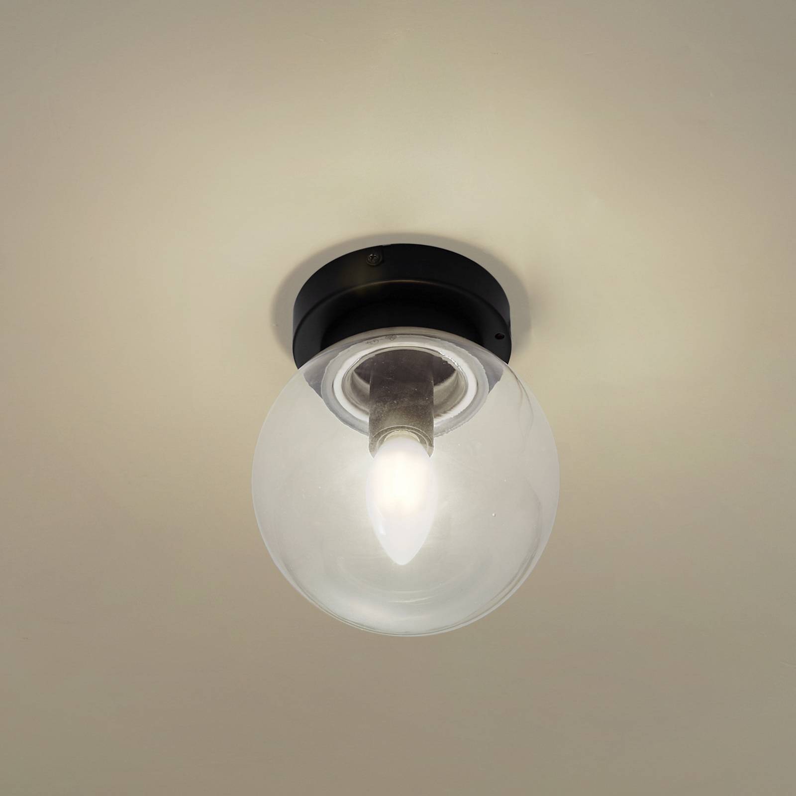 Stropné svietidlo Lucande Badolo, čierne, sklo, Ø 15 cm, IP44