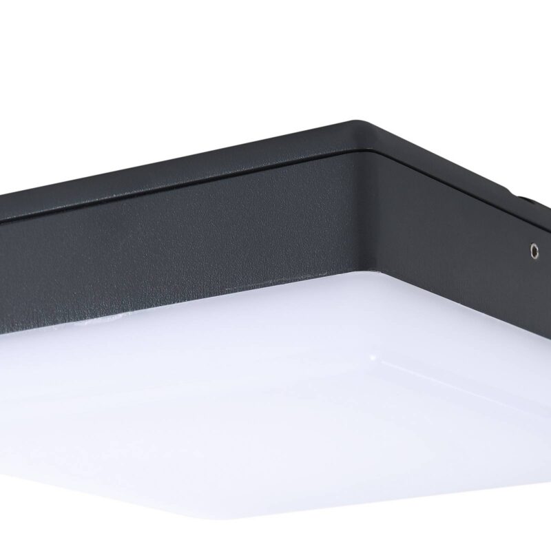 Sivé stropné svietidlo Thilo LED s detektorom pohybu Sivé stropné svietidlo Thilo LED prináša koncept osvetlenia vonkajších priestorov do praktickej podoby. Prehľadný dizajn je skombinovaný s inteligentným a flexibilným senzorovým systémom, ktorý sa optimálne prispôsobuje príslušným podmienkam. LED žiarovky vo veľkom difúzore z robustného polykarbonátu, ktorý je umiestnený v rovnako robustnom hliníkovom kryte odliatom pod tlakom, poskytujú dostatok svetla. Svietidlo možno namontovať na steny a stropy a je tiež ovládané detektorom pohybu. Časové a ďalšie nastavenia možno upraviť podľa potreby. Údaje o detektore pohybu: – Nastaviteľné trvanie svetla od 5 sekúnd do 30 minút – Uhol detekcie 150° pri montáži na stenu, 360° pri montáži na strop – Dosah 12 m x 6 m – Možno použiť na stenu aj strop – Možnosť priechodného zapojenia – Vysoká odolnosť proti nárazu IK08