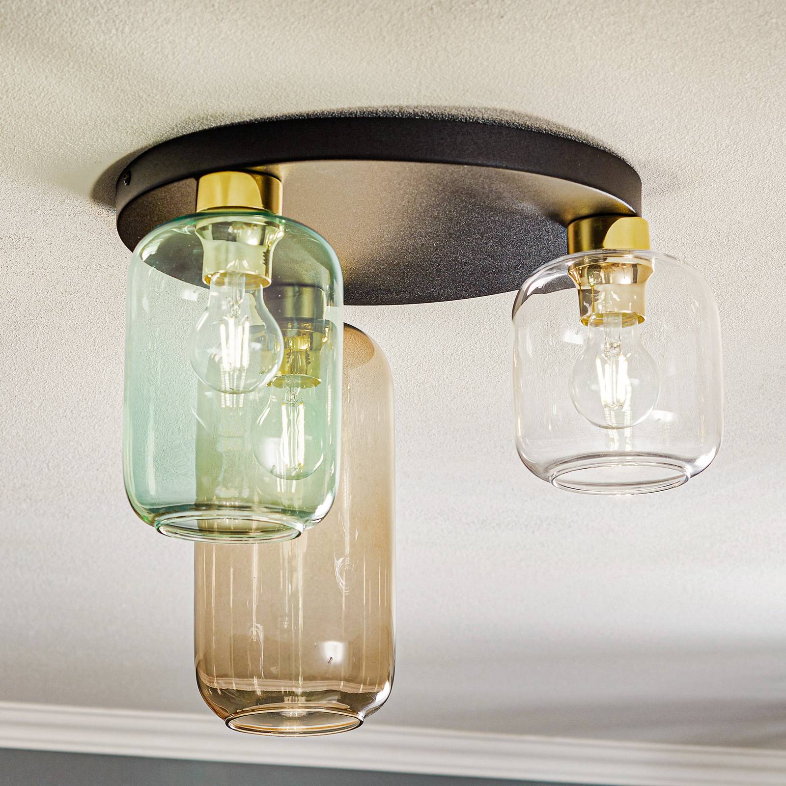 Stropné svietidlo Marco Green, 3-pl. číre/zelené/hnedé