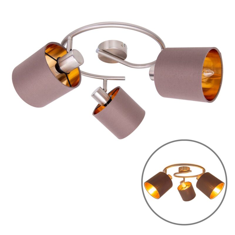 Stropné svietidlo Maron 3-pl., textil, hnedá/zlatá