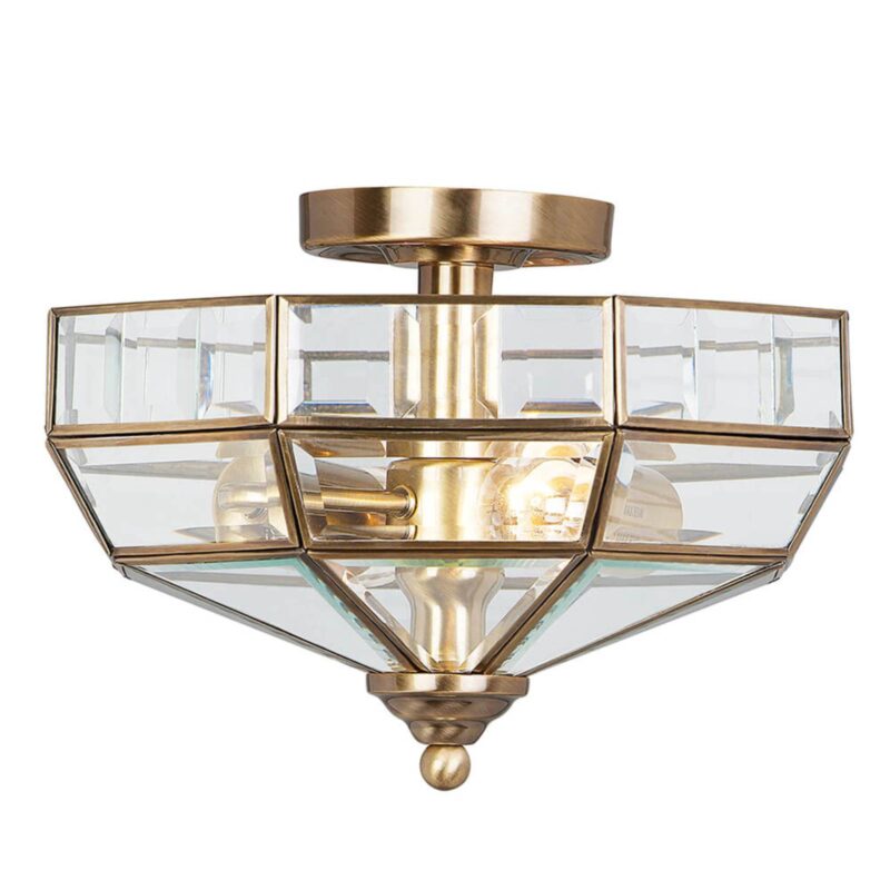 Old Park – štvorcové stropné svietidlo zo starožitnej mosadze Dištančné stropné svietidlo Old Park je solídne spracované a zaujme neobvykle štruktúrovaným tienidlo na lampu. tienidlo na lampu sa skladá z kovového rámu, do ktorého je vložených veľa malých tabúľ z číreho skla. Vyžarované svetlo môže svietiť po celej miestnosti a kovový rám v teplom mosadznom tóne vytvára krásny lom svetla a atmosféru atmosférického osvetlenia. Fantasticky navrhnutý zdroj svetla, ktorý je ideálny na všeobecné osvetlenie obývacích izieb a chodieb.