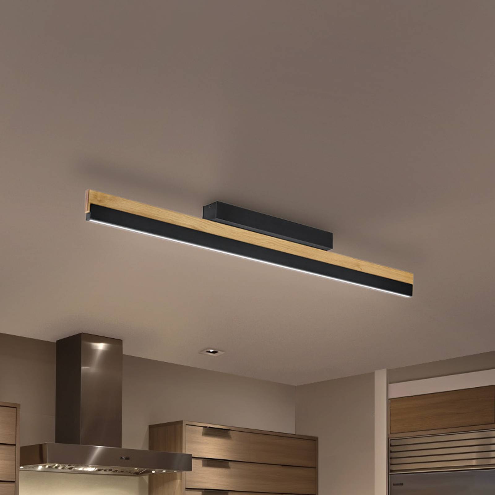 Stropné svietidlo Quitani LED Keijo, čierna/dub