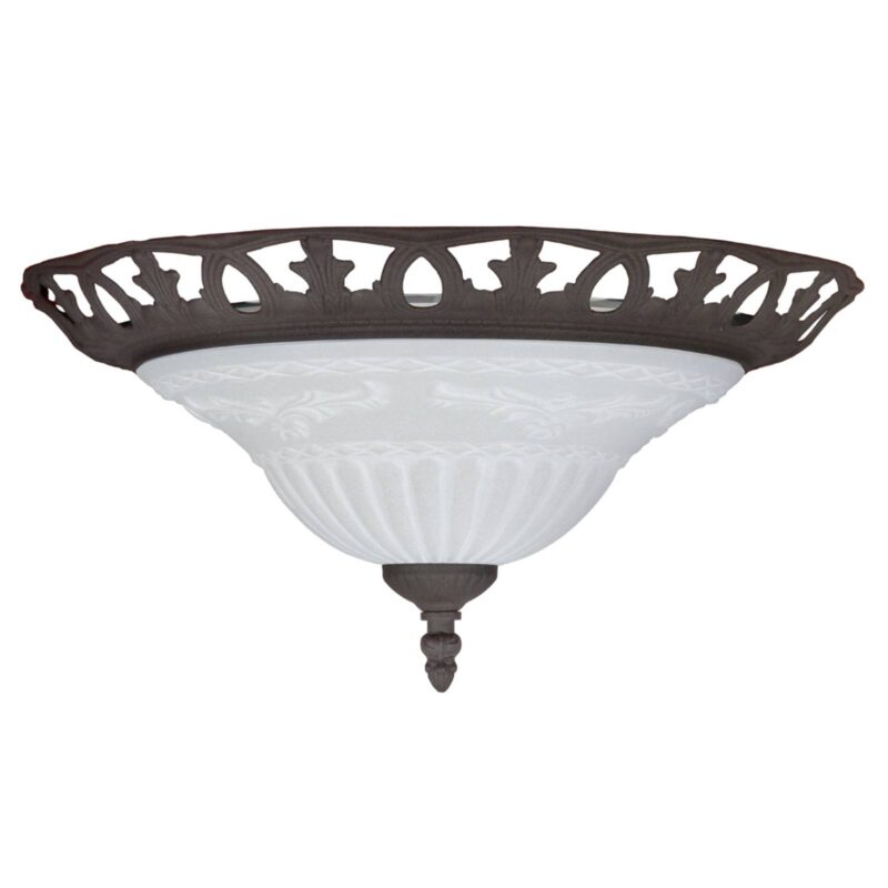 Štýlové stropné svietidlo RUST v atraktívnom starožitnom vzhľade Toto stropné svietidlo s difúzorom zo skla s opieskovaným povrchom dokonale vynikne v domových priestoroch a bytoch zariadených v rustikálnom vidieckom štýle. Vďaka svojmu bielo satinovanému, pôvabne zdobenému tienidlu, ktoré dokonale ladí s kovovými prvkami v hrdzavo hnedej farbe, sa postará o príjemnú a komfortnú atmosféru v obytnom interiéri.