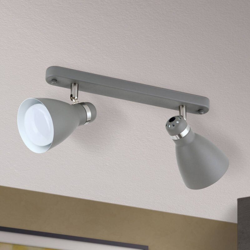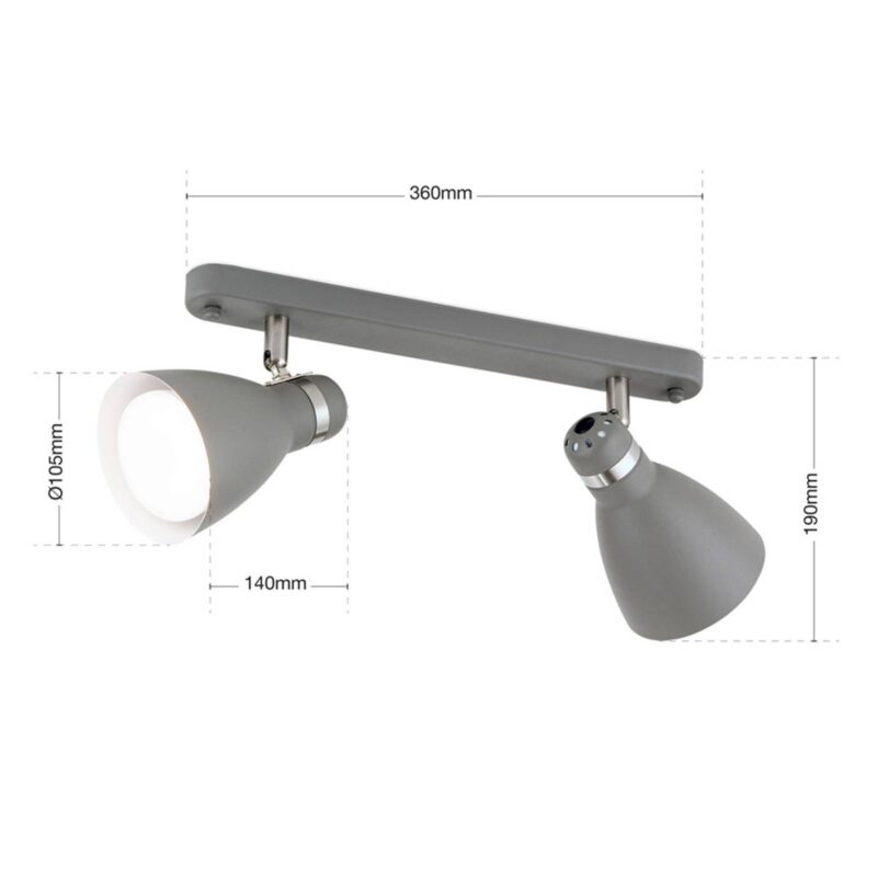 Dvojsvetelný školský stropný reflektor – hlavy svietidiel sa dajú individuálne nastaviť Moderný vzhľad robí z dvojlampového stropného reflektora School nepostrádateľný osvetľovací objekt pre moderné obývacie izby a chodby. Je vyrobený z lakovanej ocele, dve hlavy svietidla sa dajú otáčať a umožňujú tak individuálne určovať smer svetla. Tým sa vytvorí nielen dostatočné celkové osvetlenie, ale možno vhodne osvetliť aj tmavé kúty miestnosti. Vzhľad ešte viac zvýrazňuje pochrómovaný krúžok v každej objímke. – externe stmievateľné