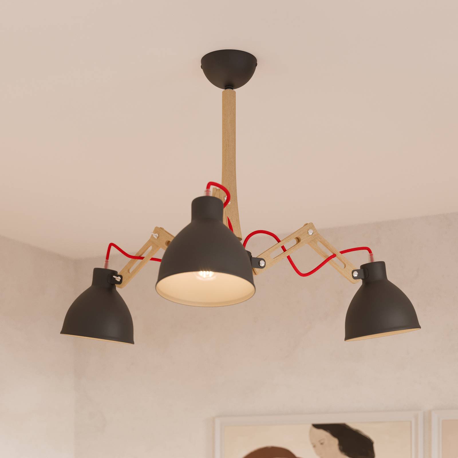 Stropné svietidlo Skansen: Priemyselný dizajn sa snúbi s európskym remeselným umením Stropné svietidlo Skansen 3-pl. nastaviteľné, čierne, spája priemyselný dizajn s teplo dreva a robustnosťou kovu. Táto kombinácia materiálov dodáva každej miestnosti jedinečnú atmosféru, či už v obývacej izbe, spálni, predsieni alebo jedálni. Svietidlo je vyhotovené v elegantnej čiernej farbe, ktorú dopĺňajú svetlé drevené prvky, čím vytvárajú štýlový kontrast. Osobitnou vlastnosťou lampy Skansen je jej nastaviteľnosť, ktorá umožňuje flexibilné prispôsobenie rôznym požiadavkám na osvetlenie. Lampa je tiež stmievateľná, ak sa používa externý stmievač, čo umožňuje individuálne nastavenie osvetlenia. Lampa Skansen, vyrobená v Európe, je synonymom kvality a starostlivého spracovania, ktoré je viditeľné v každom detaile.