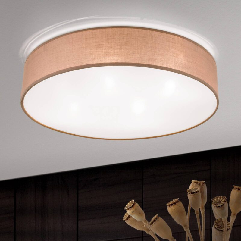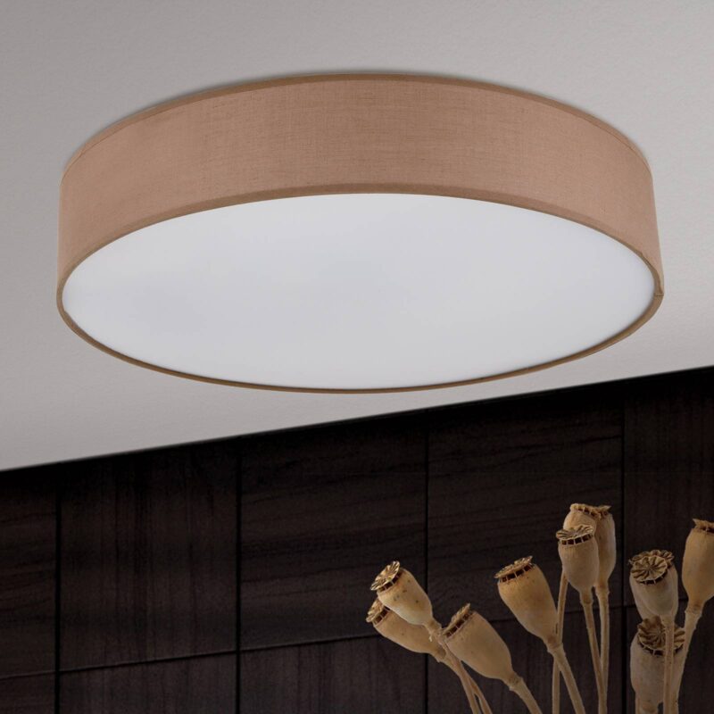 Stropné svietidlo Ufo s ľanovým tienidlom, hnedá