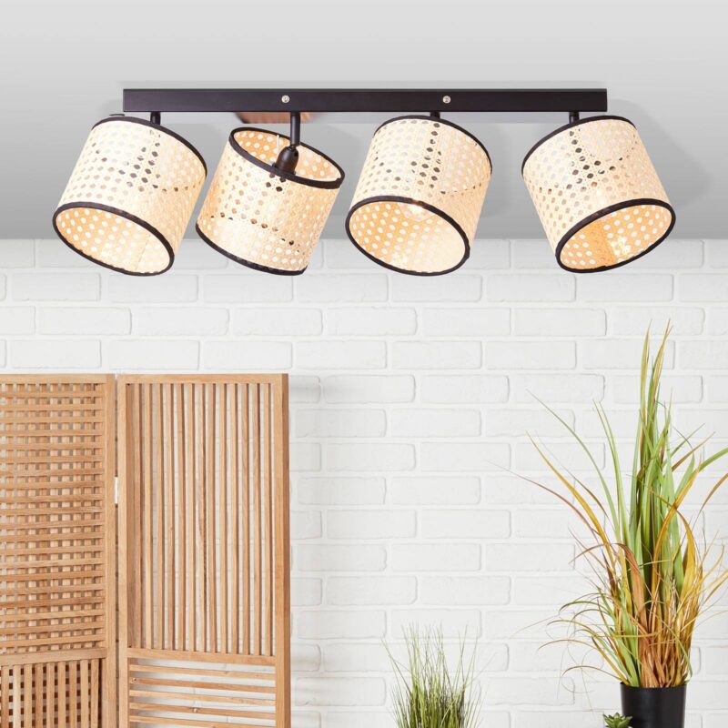 Stropné svietidlo Wiley s ratanom, 4-plameňové