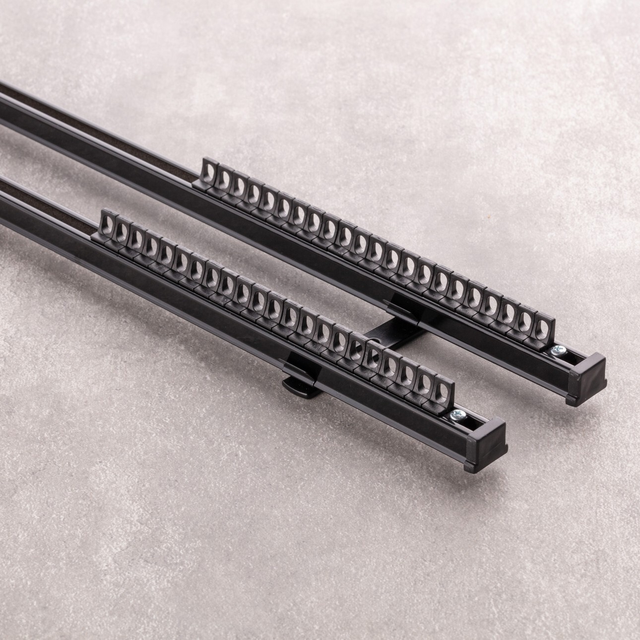 Kompletná dvojitá rovná stropná hliníková koľajnica s dĺžkou 180 cm.Vyrobená z hliníka.Predstavuje alternatívu k tradičným garnižiam, zvlášť sa odporúča tam, kde vzdialenosť od okna k stropu nedovoľuje inštalovať garnižu.Koľajnice možno spájať pomocou prídavných prvkov dostupných v predaji: spojka koľajníc, oblúk na koľajnici, stropný držiak a iné drobnejšie prvky. Súprava obsahuje:rovná koľajnica s dĺžkou 180 cm – 2 ksstropný držiak klipsa čierny dvojitý – 3 ksjazdec s očkom – 44 ksčierna záslepka – 4 ksRozmery: hĺ. 9,5 cm, výš. 2 cm.Dôležité! Pri montáži súpravy stropných hliníkových koľajníc nezabudnite na háčiky, ktoré umožňujú zavesenie závesov a záclon.