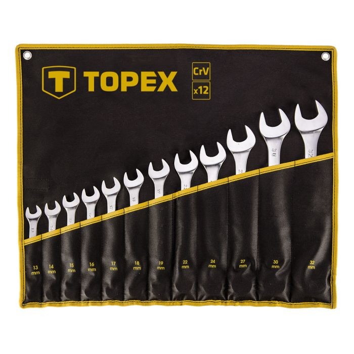 Súprava kombinovaných kľúčov TOPEX veľmi užitočná pre rôzne mechanické práce a pre všetkých správnych kutilov. Očko umožňuje presnejšie uchopenie skrutky. Kľúče sú vyrobené z odolnej chróm-vanádiovej ocele, zaisťujúce dlhú životnosť nástroja. Usporiadané v praktickom obale, ktorý uľahčuje skladovanie a prepravu produktu. Značka TOPEX je zameraná na domácich majstrov.