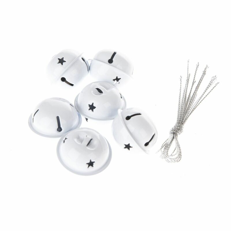 Súprava kovových závesných rolničiek s hviezdou 6 ks, biela