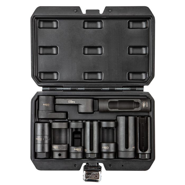 Súprava nástrčných kľúčov pre lambda sondu a vstrekovače je produkt určený pre profesionála, ktorý si potrpí na kvalitu a komfort. Sada obsahuje dvanásťbodové, šesťhranné, zahnuté a dvanásťbodové objímky pre vstrekovače. Všetko je uložené v pohodlnom pevnom kufri, vďaka ktorému je v dielni jednoduchšie udržiavať poriadok. Vlastnostipre profesionálovpre rôzne typy áut obľúbených značiekzabalené v kufri Obsah balenia1/2 ”dvanásťuhlové objímky pre lambda sondu: 78 mm x 22, 28 mm; 80 mm x 27 mm1/2” šesťhranná objímka pre lambda sondu: 90 mm x 29 mm3/8 „šesťhranné objímky pre lambda sondu: 74 mm x 27 mm; 80 mm x 22 mm; 90 mm x 22 mm1/2” 12-bodové objímky pre vstrekovače: 108 mm x 22 mm Technické parametre:Výrobca:NEO TOOLSEAN: 5907558436891