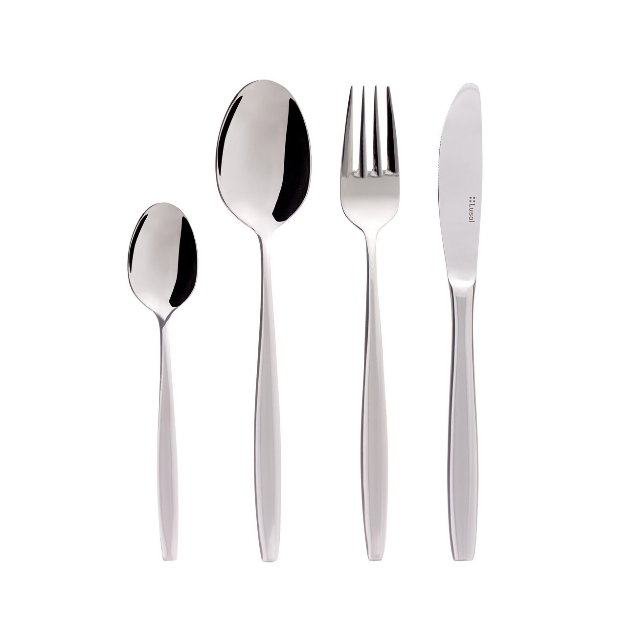 Sada príborov z nehrdzavejúcej ocele striebornej farby.Výnimočná krása a moderný dizajn očarili v súprave príborov pozostávajúcej z 24 kusov.Jednoduchý tvar rukovätí je ideálny na servírovanie jedál. Vďaka ich univerzálnemu charakteru sú výnimočne kompatibilné s riadom akéhokoľvek štýlu.Príbory Bernabeus sú ideálne na každodenné použitie a na rodinné oslavy ako praktický a elegantný doplnok stolovania.Sú zabalené v ozdobnej škatuľke a predstavujú zaujímavú voľbu pre darček na špeciálnu príležitosť, napríklad svadobný dar. Výrobok je vyrobený z nehrdzavejúcej ocele.Príbory možno umývať v umývačke riadu.Súprava obsahuje: 6 lyžíc, 6 lyžičiek, 6 vidličiek, 6 nožov.Materiál: nehrdzavejúca oceľ.Povrchová úprava: lesklá.Farba: strieborná.
