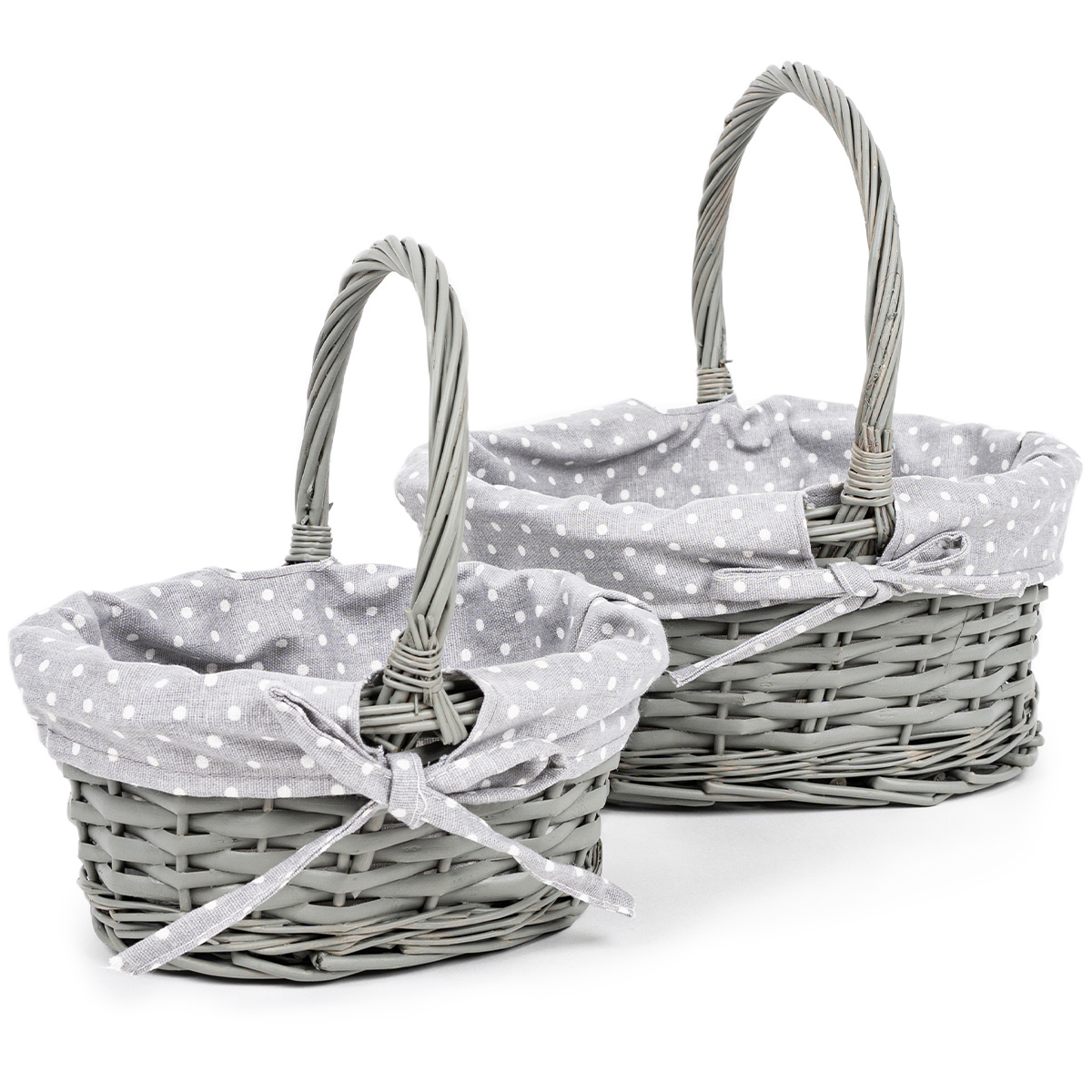 Súprava prútených košíkov s látkou Sivá bodka, 2 ks, 2 veľkosti, 26 x 28 x 22 cm