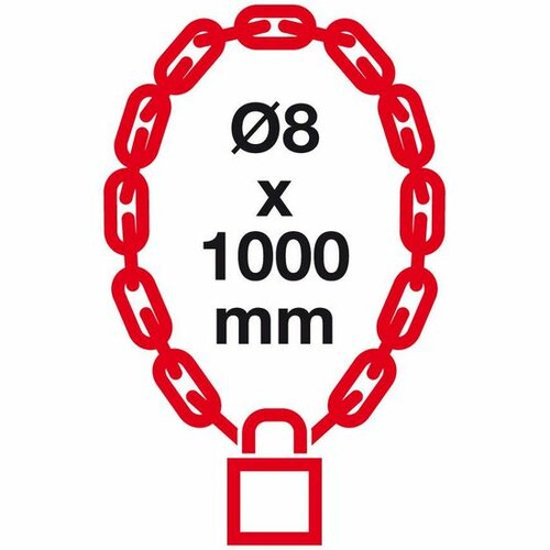 Súprava reťaze a visiaceho zámku.Bezpečnostná reťaz HARDENED s ochranným krytom z textílie.Oko reťaze pr. 8 mm, dĺžka 1000 mmHmotnosť súpravy netto: 1,51 kg