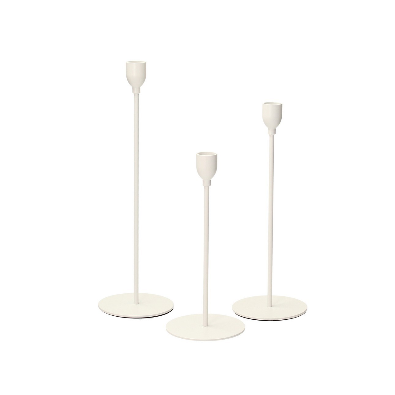 Súprava bielych svietnikov z kovu.