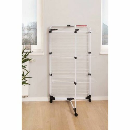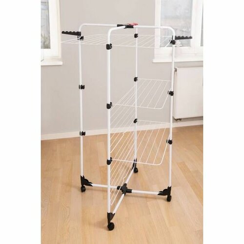 Flexibilný troj-úrovňový oceľový sušiak na bielizeň so sušiacou plochou až z 3 práčok. Vďaka nezávislým roštom, ktoré môžu byť použité ako úplne otvorené – pre sušenie dlhých odevov a jemnej bielizne – alebo polozložené a prisunuté napr. pri stene alebo radiátore, ak máte malé množstvo bielizne a potrebujete ušetriť miesto. Otočné kolieska umožňujú jednoduché premiestňovanie. Keď sa nepoužíva, dá sa ľahko kompaktne zložiť a skladovať.Vlastnosti a parametre: