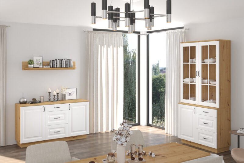 Sektor SUZY svojím zaujímavým vzhľadom púta veľkú pozornosť a vďaka výberu z mnohých prvkov si tak vytvoríte domov plný pohody a štýlu. Jeho svieže farebné prevedenie biela a dub artisan Vám zabezpečí nadčasový a moderný interiér.Súčasťou sektoru je závesná polica SUZY. Polica je vyrobená z veľmi kvalitného MDF materiálu, ktorý sa ľahko udržiava. Farba police je dub artisan.Hodí sa do obývačky i jedálne.Rozmery:- šírka: 120 cm,- výška: 18 cm,- hĺbka: 17 cm.Dodávame v demonte, pričom montáž je veľmi jednoduchá.