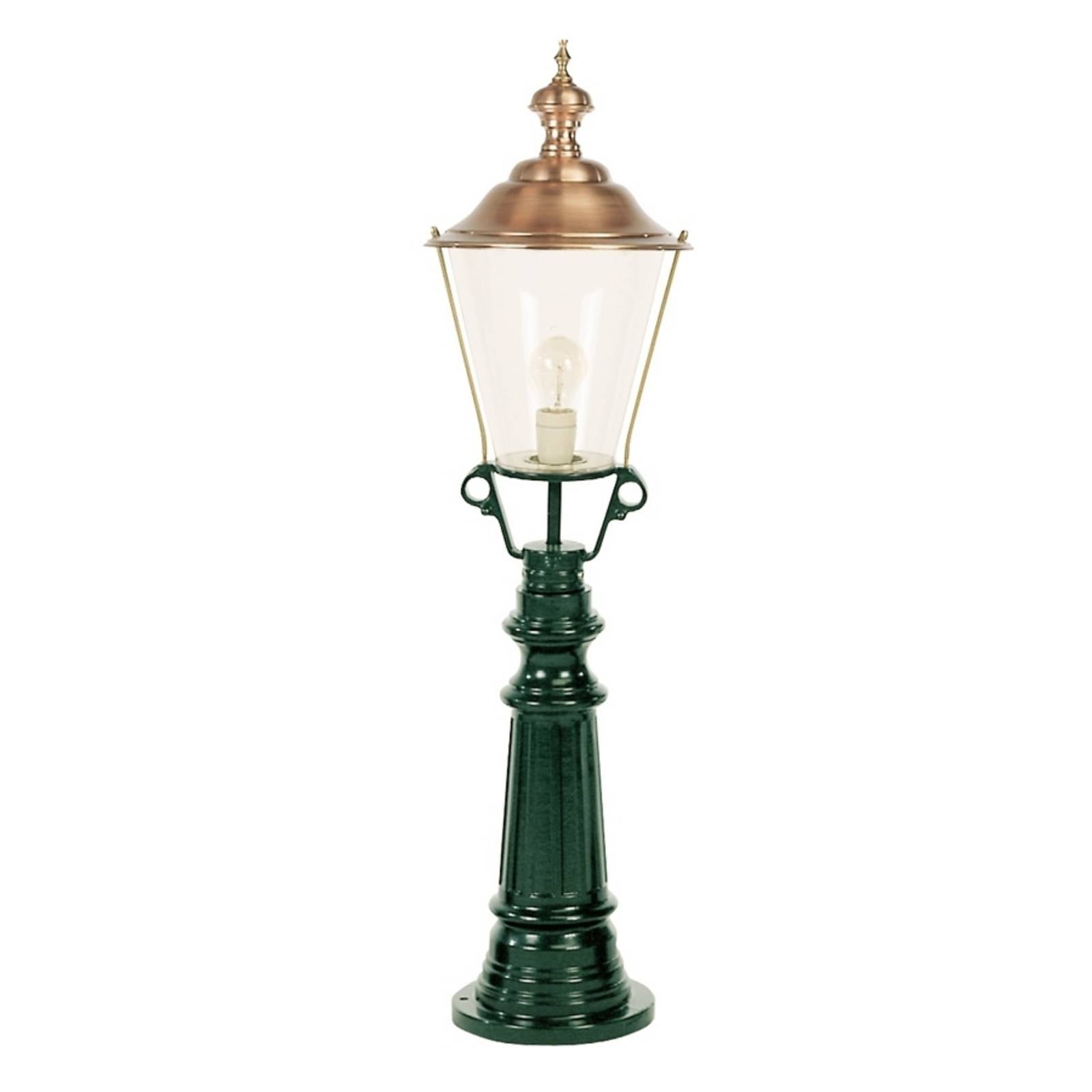 Atraktívne svetlo na chodník Timor s ozdobnou kapotou z medi Toto svetlo na chodník zaujme starobylo vyzerajúcou medenou kapotou, ktorá dokonale ladí s lesklým kovom a pôsobí veľmi vkusne. Toto vysokokvalitné svietidlo prispieva nielen k väčšej bezpečnosti vo vonkajších priestoroch, ale pôsobí aj veľmi prestížne. Poznámka k inštalácii: Svietidlo sa pripája priamo do zásuvky. Odporúčame, aby inštaláciu vykonal kvalifikovaný elektrikár. Výrobca na tento účel odporúča použiť gumové káble