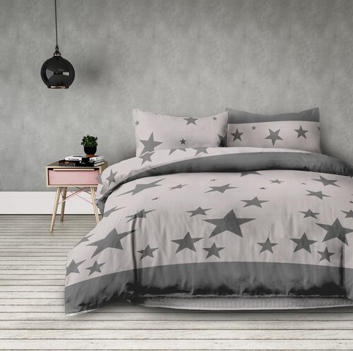 Svetlosivé posteľné obliečky so vzorom hviezd 160 x 200 cm