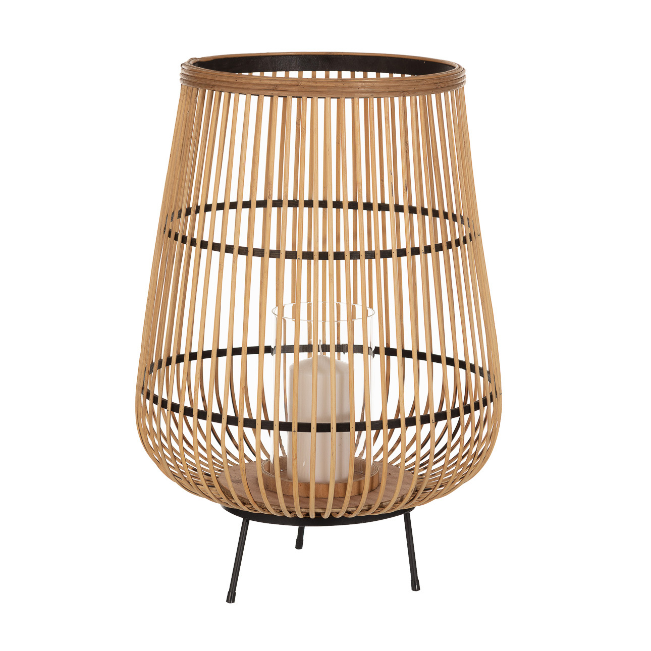 Vysoký svietnik / bambusová lucerna v prírodnej farbe na troch nohách, mimoriadne originálna dekorácia.Ideálne na výzdobu každého interiéru, ako aj terasy alebo záhrady. Počas letných večerov na terase navodí útulnú atmosféru.Má sklenený kryt na sviečku.Rozmery: priemer 42 cm, výška 61 cm.Materiál: bambusové drevo/kov.Farba: prírodné bambusové drevo/čierna.Hmotnosť: 1,27 kg.