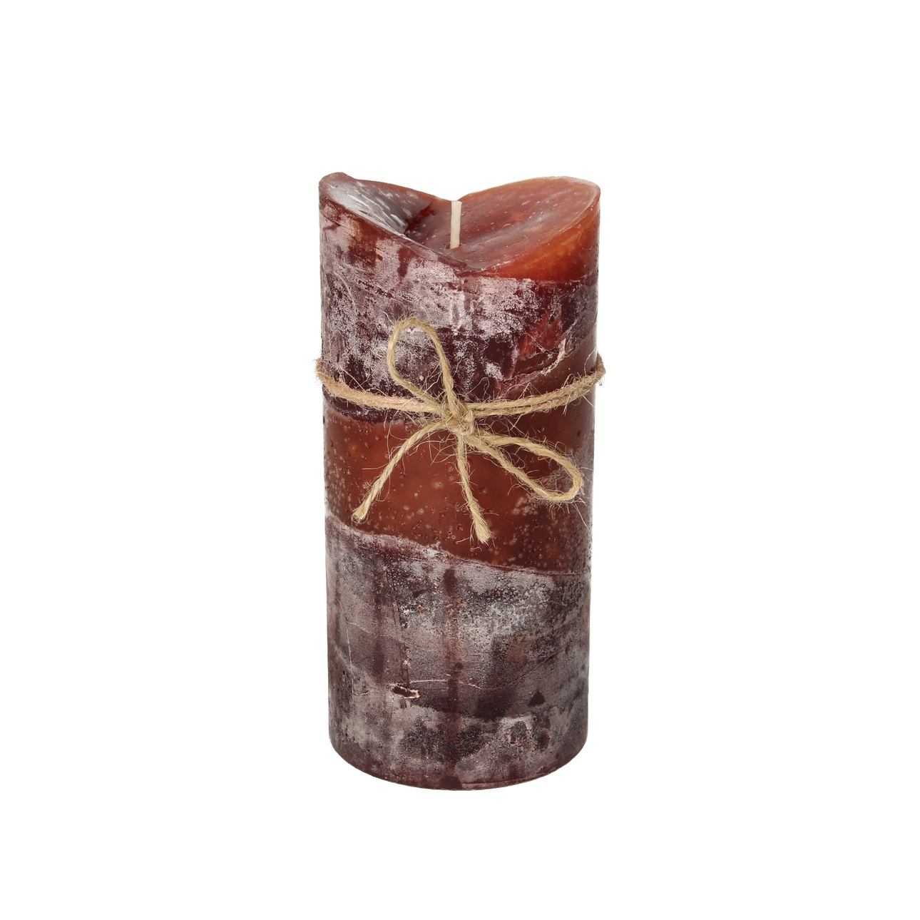Dekoratívna sviečka zviazaná šnúrkou vo vínovej farbe.
