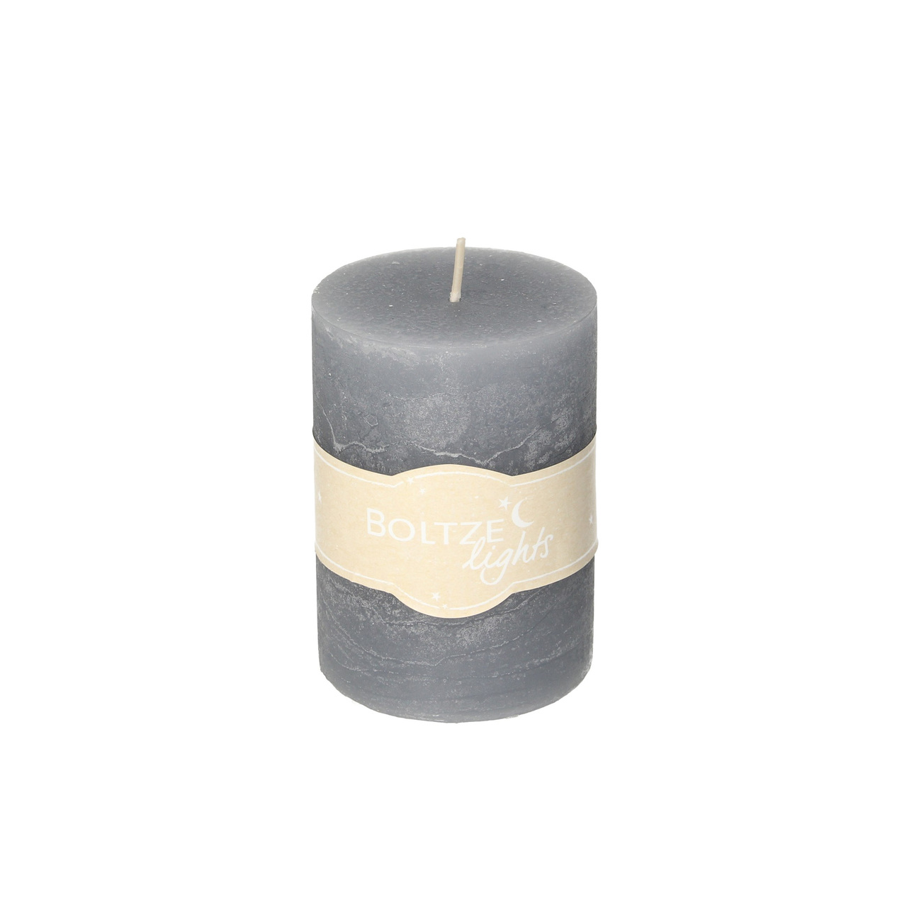Dekoratívna cylindrická sviečka v sivej farbe.