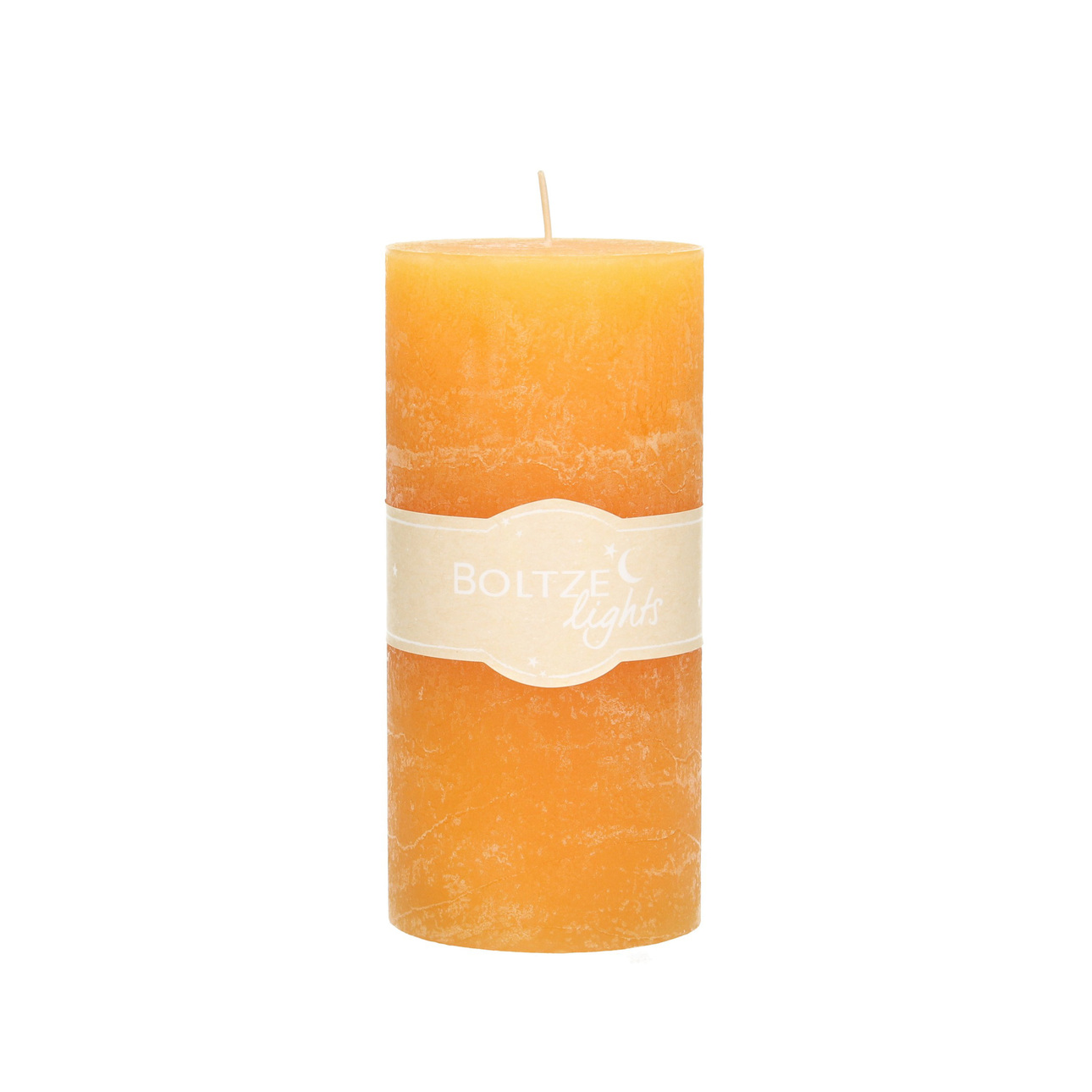 Dekoratívna cylindrická sviečka v broskyňovej farbe.