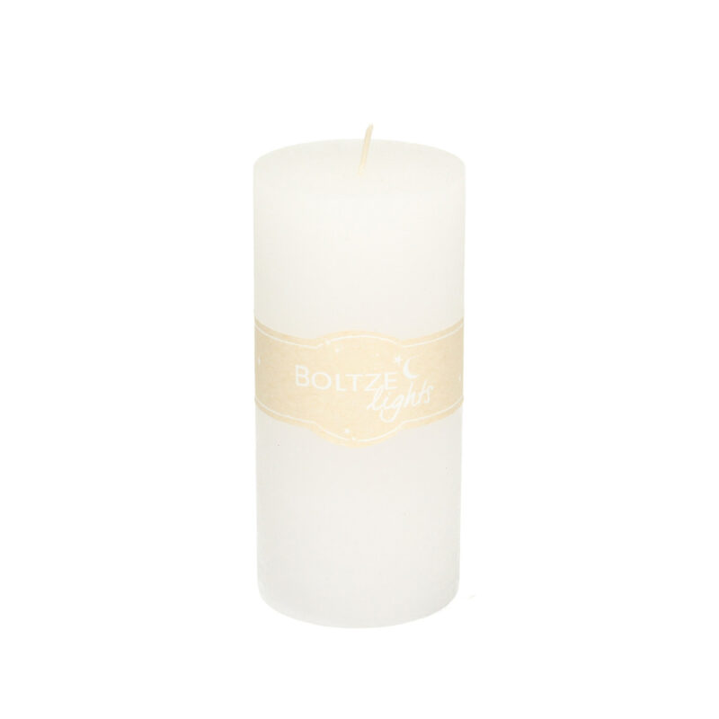 Dekoratívna cylindrická sviečka v bielej farbe.