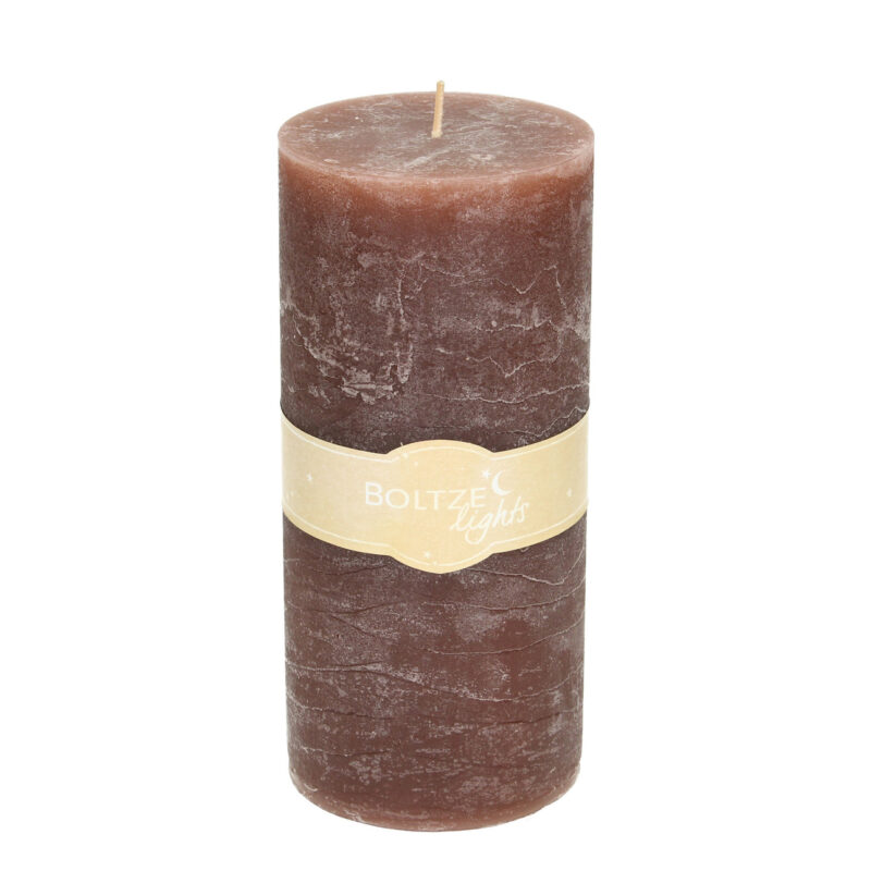 Dekoratívna cylindrická sviečka v tmavohnedej farbe.