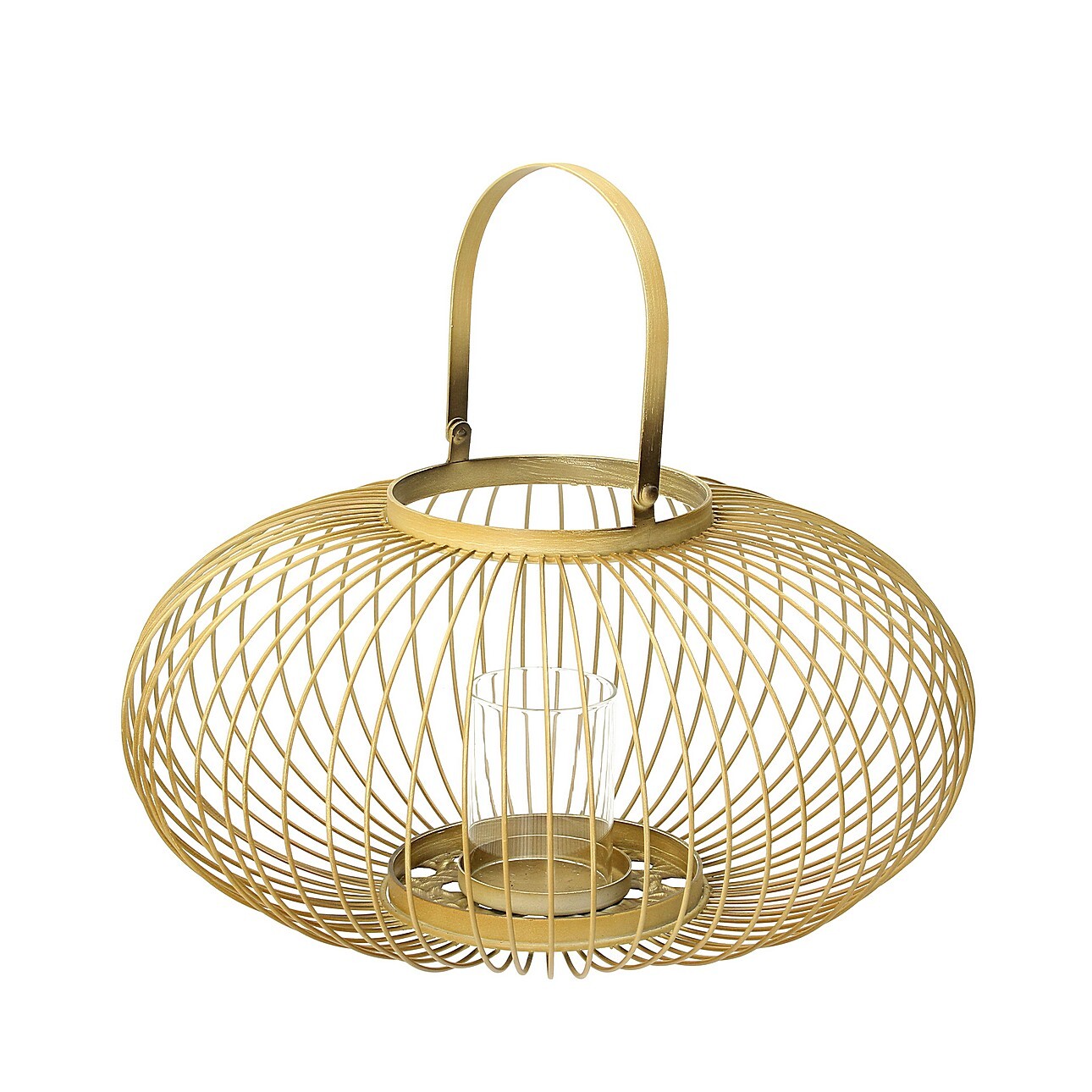 Kovový svietnik zlatej farby je mimoriadne originálnou ozdobou.Vďaka ľahkej, drôtenej štruktúre svietnik svojou prítomnosťou nezahltí okolie.Doplnok, ktorý poteší oko a zatraktívni celý interiér.Má sklenený svietnik s priemerom 20 cm.