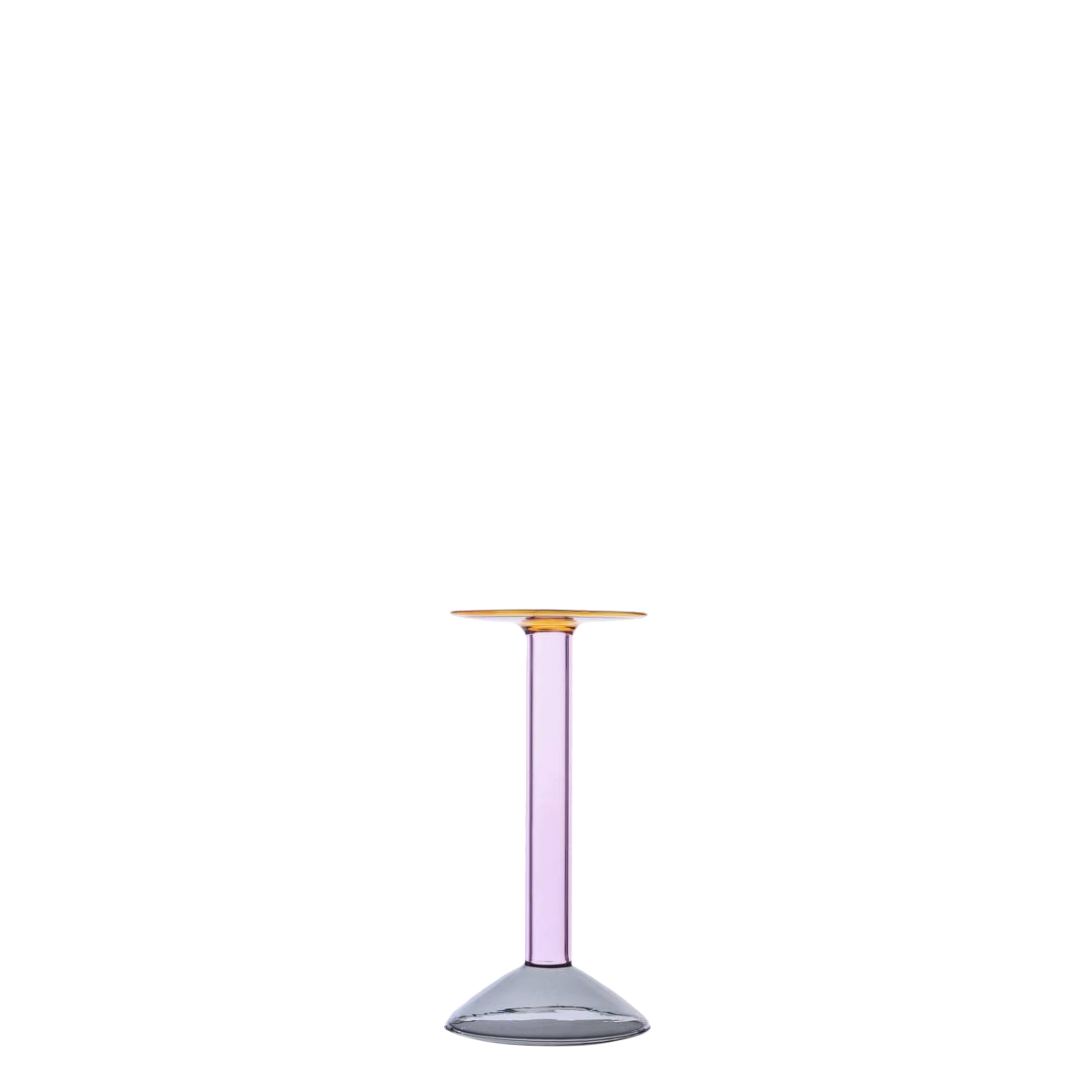 Sklenený svietnik značky Ichendorf má jemné ružové, jantárové a sivé odtiene. Svoju umeleckú hodnotu si zachová aj keď sa práve nepoužíva a je ozdobou každého interiéru.