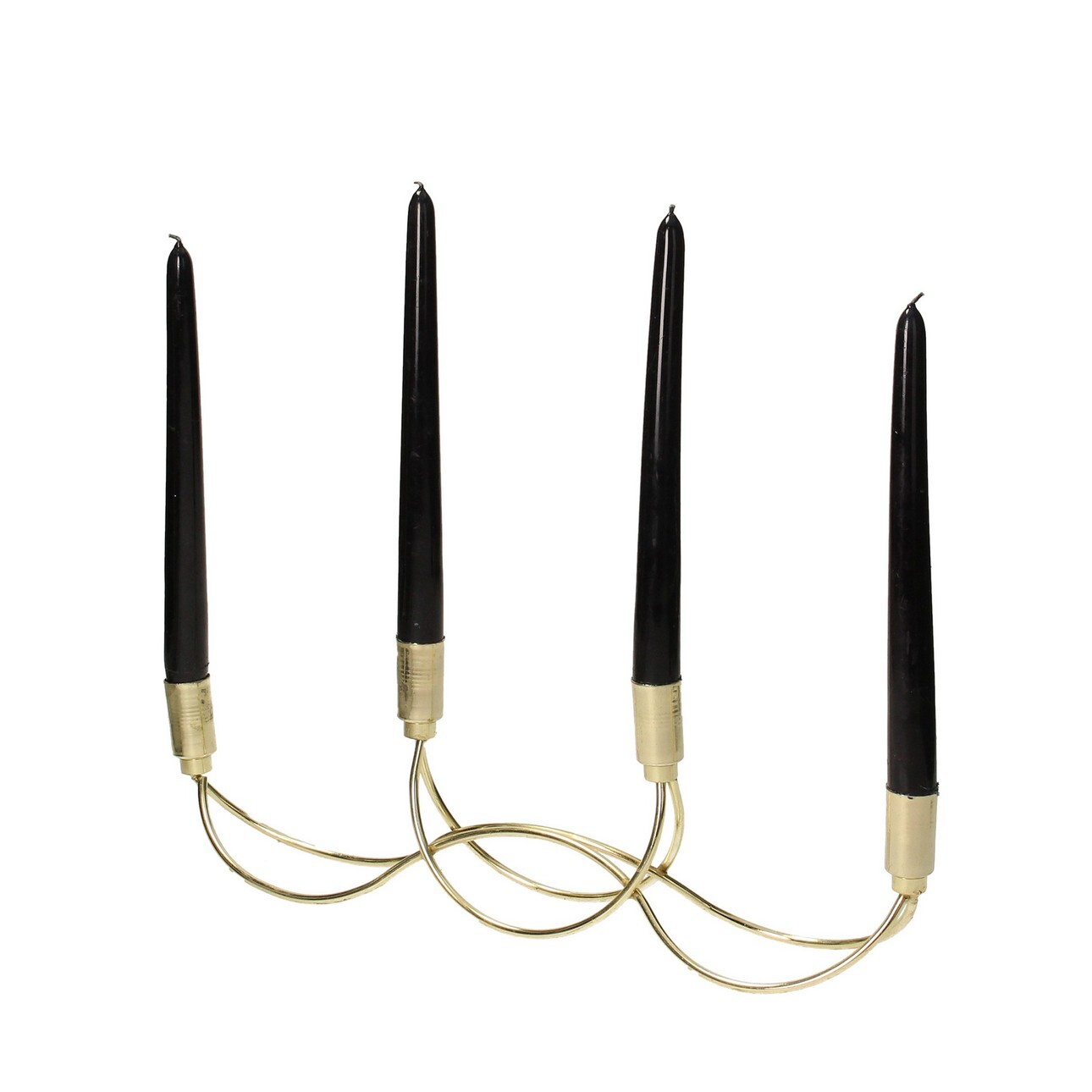 Elegantný kovový svietnik na štyri dlhé sviečky v zlatej farbe.