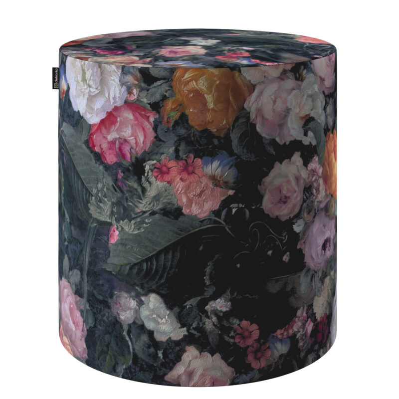 Taburetka valec, tvrdá, farebné kvety na tmavom pozadí, ø40 cm x 40 cm, Gardenia, 161-02