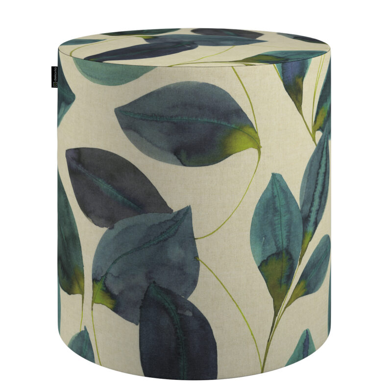 Taburetka valec, tvrdá, smaragdovo – zelené listy s fialovým nádychom na plátne, ø40 cm x 40 cm, Abigail, 143-15