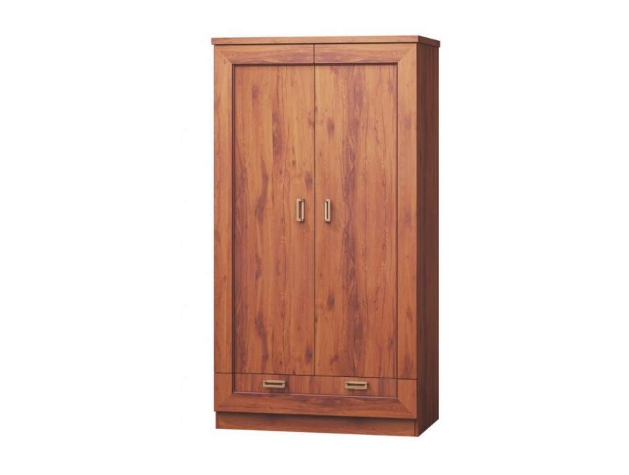 Dvojdverová šatníková skriňa T-7 zo sektoru TADEAS.Vo vnútri je skriňa riešená vešiakovou tyčou, v spodnej časti skrine sa nachádza praktická zásuvka.Rozmery v/š/h 190 x 90 57 cm. Farebné prevedenie: storočný dub. Nábytok je vyrobený z lamino dosky s hrúbkou 16 mm, horná doska je hrubá 32 mm. Rustikálnosť nábytku umocňujú kovové úchyty vo farbe staré zlato.Dodávame v demonte. Originálny sektorový nábytok TADEAS s rustikálnym nádychom. Z 25 elementov si môžete zariadiť štýlovú obývačku, jedáleň, spálňu či dokonca pracovňu.
