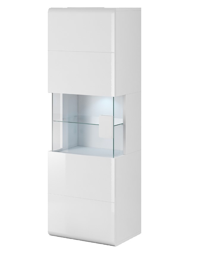 Obývací sektor TALEDO je spojením moderného štýlu a kvalitného prevedenia. Vysoká závesná vitrína TALEDO je elegantným prvkom sektoru TALEDO.Je efektne rozdelená na presklenú časť a uzavretú – úložnú časť. Sklenené časti nábytku sú z tvrdeného skla a zaručujú bezpečnosť pri používaní. K nábytku je možné dokúpiť diskrétne LED osvetlenie (nie je súčasťou nábytku). Farebné prevedenie je v žiadanej kombinácii biela / biely lesk.Korpus nábytku je tvorený z lamino dosky. Dvierka nábytku sú vo farbe biely lesk. Predné časti dvierok sú potiahnuté membránovou fóliou, ktorá nábytku poskytuje dlhú životnosť.Dodávame v demonte.Rozmery (šírka/ výška/ hĺbka): 53 x 159 x 39 cm