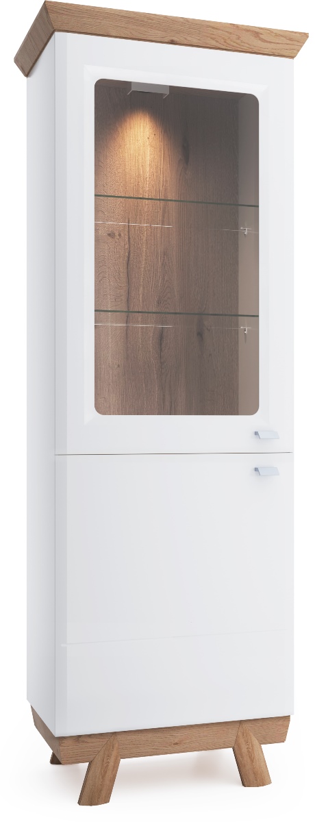 TARANKO Aspen AS-W1/2 L vitrína s osvetlením biely vysoký lesk / dub (Grande 01)