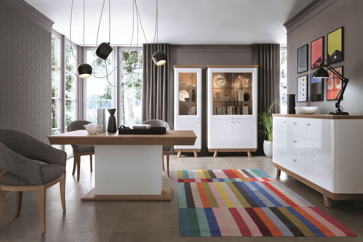 Jedáleň s osvetlením znamenitej a exkluzívnej kolekcie Aspen v sebe ukrýva tieto skutočne unikátne komponenty: vitrína s osvetlením (117,3×43,4×205,2 cm), vitrína s osvetlením (67,1×43,4×205,2 cm), komoda (167,7x41x91,9 cm) a rozkladací jedálenský stôl (160-210x90x77,5 cm). Takto zloženú…