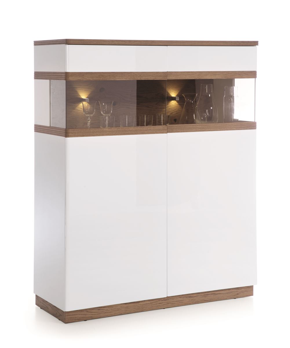 TARANKO Como CM-KB vitrína s osvetlením biely vysoký lesk / dub Como